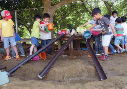 幼児期は子どもが共に生きる力を育まれながら、「家庭」から「社会」へと歩み出し、人間としての土台が形成されるとても大切な時期です。人格の根っこが形成される幼児期の子どもたちにとって、本当に大切なことはそんなに多くはありません。それは、『良い環境の中で、豊かな愛情に見守られながら、お友だちと十分に遊ぶ』という単純な原則です。